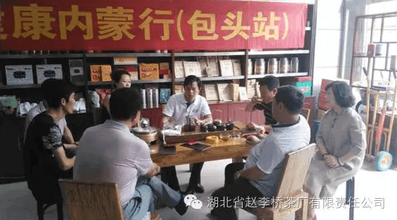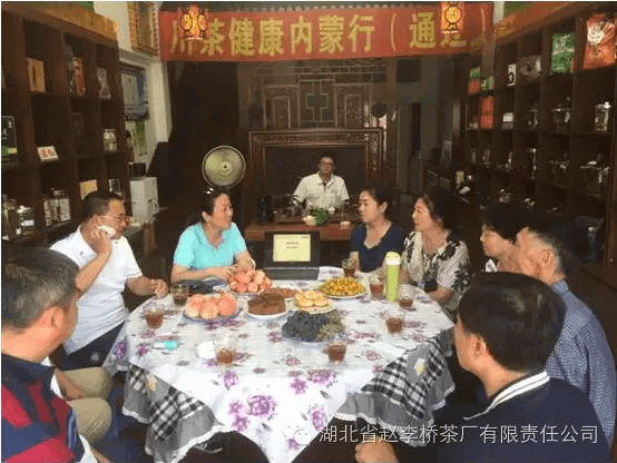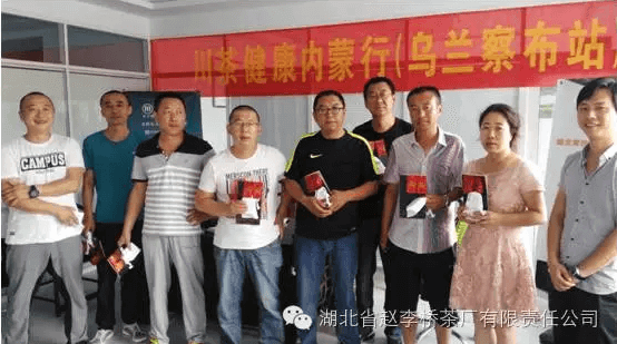把自己的青春獻(xiàn)給了川字青磚茶的包頭公司經(jīng)理趙敏(左五)與茶業(yè)愛好者合影