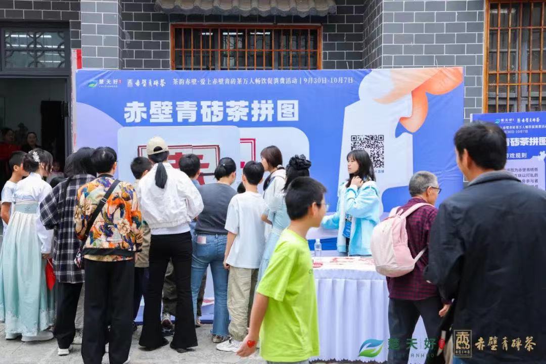 在展位的另一側(cè),游客們沉浸在“草船借箭”趣味游戲、幸運(yùn)大轉(zhuǎn)盤等互動環(huán)節(jié)中,贏取了與赤壁青磚茶相關(guān)的小禮品。大家積極參與,笑聲、歡呼聲此起彼伏,現(xiàn)場氣氛熱烈非凡。