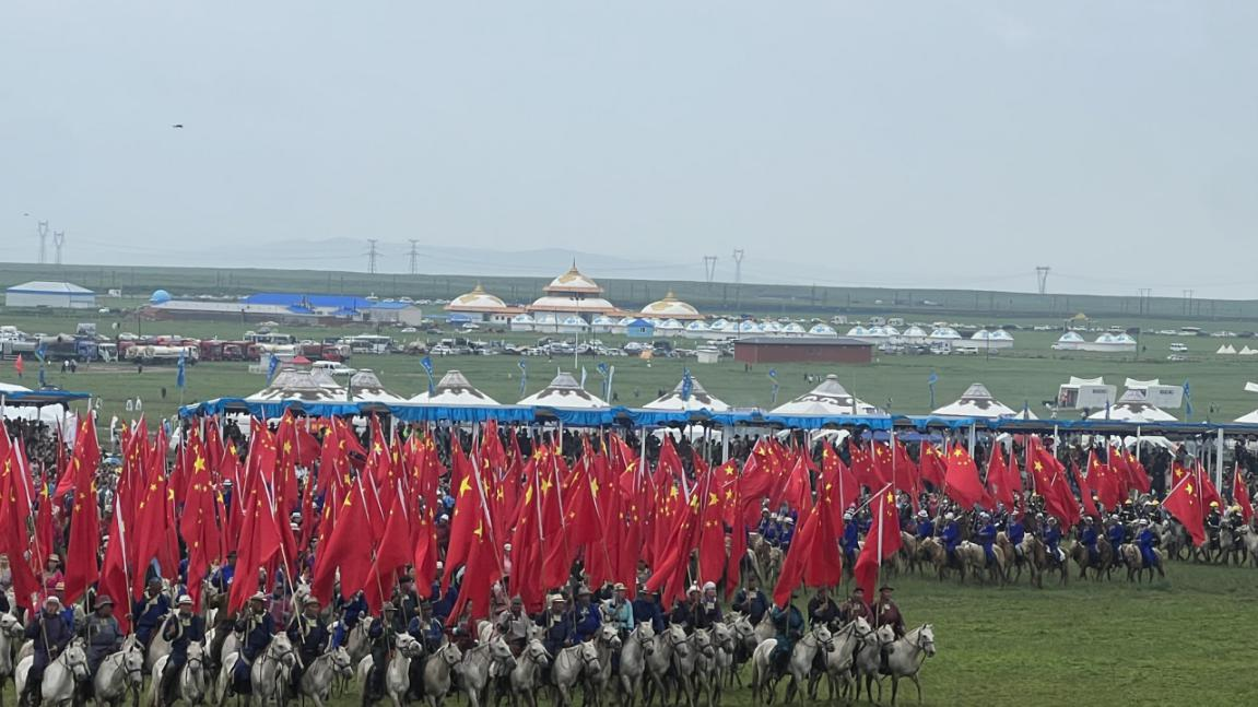 在廣袤無垠、綠草如茵的錫林郭勒大草原上,“歌游內(nèi)蒙古 天天那達(dá)慕”—— 內(nèi)蒙古自治區(qū)第35屆草原那達(dá)慕開幕式熱鬧非凡。數(shù)萬名身著節(jié)日盛裝的各族群眾如潮水般從四面八方匯聚而來,將這片綠色海洋裝點(diǎn)得五彩斑斕。“鏡頭下的你和我” 游客抓拍活動(dòng)瞬間點(diǎn)燃現(xiàn)場(chǎng)激情,萬人手機(jī)搖獎(jiǎng)更是把大家的期待值推向頂點(diǎn)。隨著吉祥物 “達(dá)慕慕” 引領(lǐng)游客方陣歡快入場(chǎng),十二盟市方陣身著特色民族服飾依次走過會(huì)場(chǎng),這場(chǎng)草原盛會(huì)正式拉開華彩大幕。