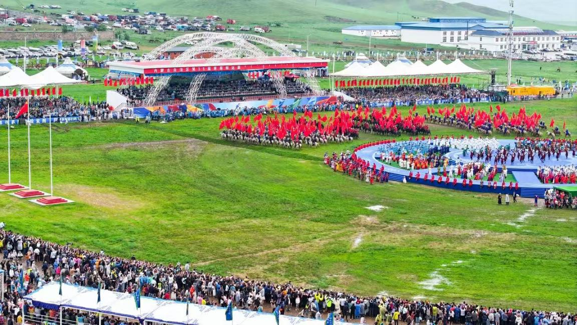 在廣袤無垠、綠草如茵的錫林郭勒大草原上,“歌游內(nèi)蒙古 天天那達(dá)慕”—— 內(nèi)蒙古自治區(qū)第35屆草原那達(dá)慕開幕式熱鬧非凡。數(shù)萬名身著節(jié)日盛裝的各族群眾如潮水般從四面八方匯聚而來,將這片綠色海洋裝點(diǎn)得五彩斑斕。“鏡頭下的你和我” 游客抓拍活動(dòng)瞬間點(diǎn)燃現(xiàn)場(chǎng)激情,萬人手機(jī)搖獎(jiǎng)更是把大家的期待值推向頂點(diǎn)。隨著吉祥物 “達(dá)慕慕” 引領(lǐng)游客方陣歡快入場(chǎng),十二盟市方陣身著特色民族服飾依次走過會(huì)場(chǎng),這場(chǎng)草原盛會(huì)正式拉開華彩大幕。